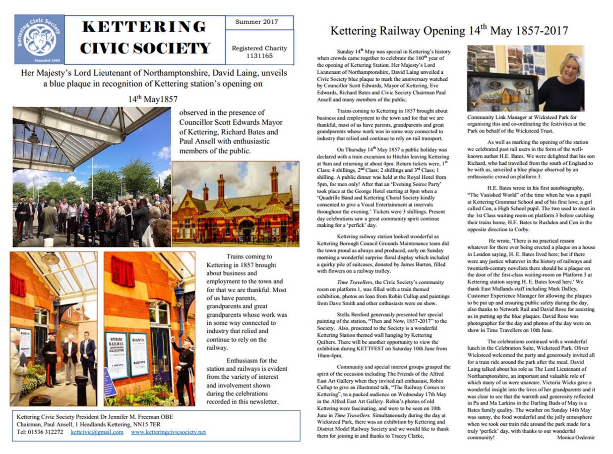 | Home | News | Programme | Rose Bowl Award | Blue Plaques | Local Area | Local People & Issues | Kettering Mosaic | Publications | Society Shop | Links & Contacts | Planning Applications | Membership Details | ||
