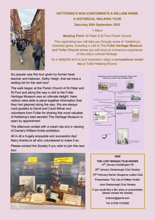 Home | News | Programme | Rose Bowl Award | Blue Plaques | Local Area | Local People & Issues | Kettering Mosaic | Links & Contacts | Planning | Membership | ||